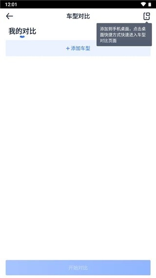 这样就打开了【车型对比】界面,点击下方的【添加】按钮;