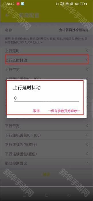 接下来,点击【上行延时抖动】选项,接着添加上对应的参数,然后点击【保存】按钮,具体操作可参考下图。