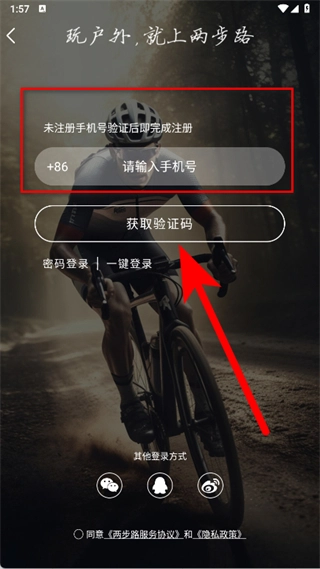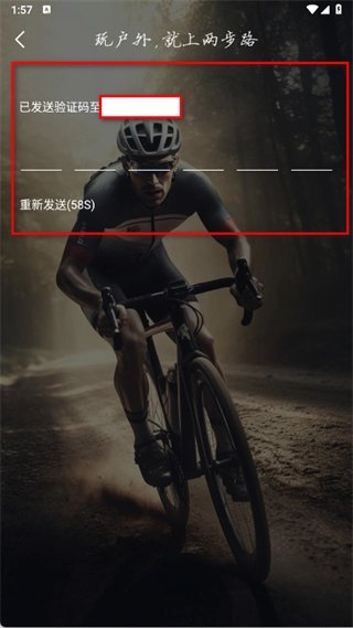 在验证码输入界面,填写接收到的验证码即可完成注册或登录操作。