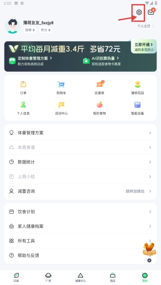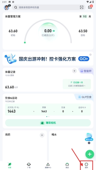 打开体重管理类应用,点击底部的“我的”选项,进入个人中心页面。