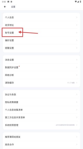 在设置页面中,找到并点击“账号设置”选项,即可进入对应的账号设置界面。