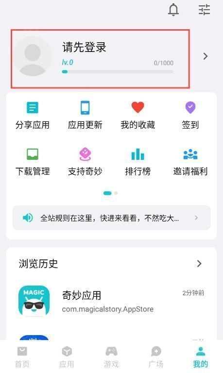 打开奇妙应用进入首页,点击下方【我的】