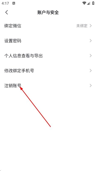 在账户与安全页面,点击注销账号选项,即可执行账号注销的操作。