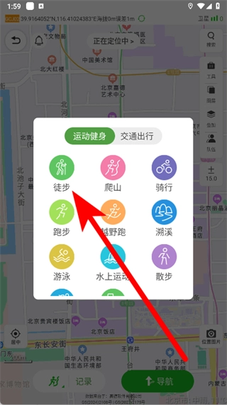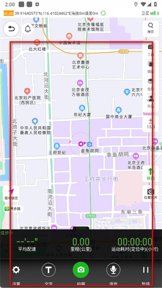 进入徒步记录页面,就能看到实时的运动轨迹、走过的里程以及花费的时间等信息。
