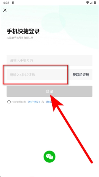请输入收到的4位验证码,勾选相关选项后点击登录按钮,即可完成注册登录流程。