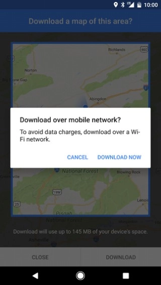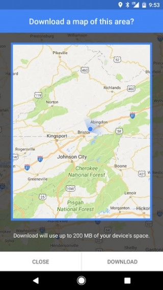 拖动此框,使其覆盖你希望保存以便离线使用的区域。你也可以通过放大或缩小操作,来调整所需区域的范围大小。