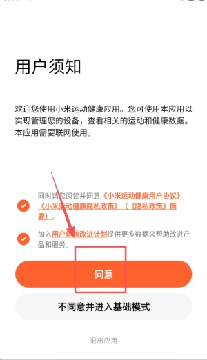 在本站安装并打开小米运动健康应用,随后按照弹出窗口的提示,开启对应的相关权限。
