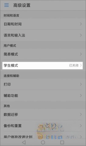 打开设置界面,进入高级设置选项,找到“学生模式”功能,接着依据系统给出的提示完成密码的设置操作。