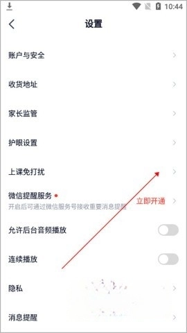 在设置界面找到【上课免打扰】选项。