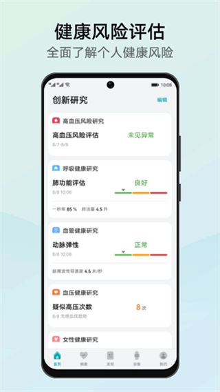 涵盖心脏健康、血管健康、肝脏脂肪等多个专项研究项目,覆盖身体关键健康领域,满足用户多维度健康监测需求。