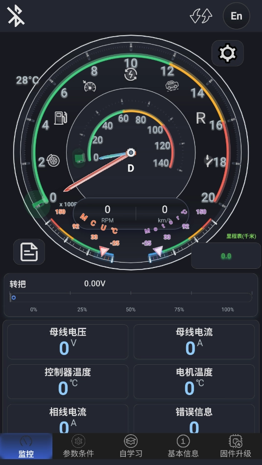 通过蓝牙连接来调试凌博控制器的静态参数,并对其运行状态进行监控;还能借助蓝牙实现凌博控制器内部固件的远程OTA升级。同时,记录使用该控制器的电动自行车的运行状态,以及调试电流、电压等相关参数。