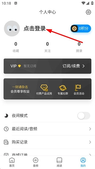 在个人中心页面,点击点击登录,进入登录页面。