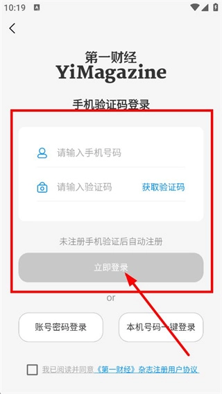 输入手机号码和验证码,点击“立即登录”按钮,即可完成登录流程。