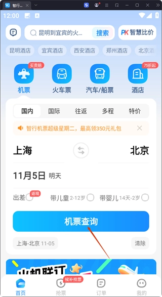 智行机票怎么订机票