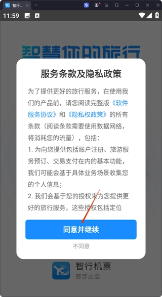 使用前请仔细阅读【服务协议】和【隐私政策】,点击【同意并继续】按钮即可进入软件。