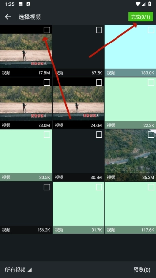 在视频选择页面,勾选【目标视频】后点击【完成】按钮,即可进入视频预览页面。