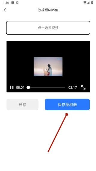 在视频预览页面,点击【保存至相册】按钮,就能完成视频的更改与保存操作。