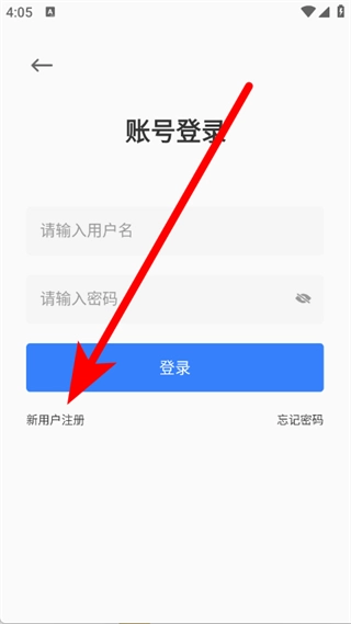 在账号登录界面,点击新用户注册选项,即可进入新用户注册页面。