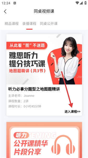 在同桌视频课的页面里,挑选你想学习的课程,然后点击【进入课程】按钮。