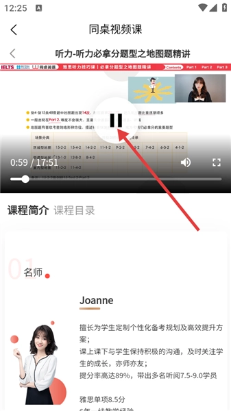 进入课程播放页面后,点击播放按钮,就能开始学习这个视频课程了。