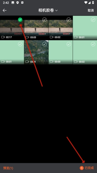 在视频选择页面勾选目标视频后,点击“已完成”按钮,即可进入视频导入确认页面。