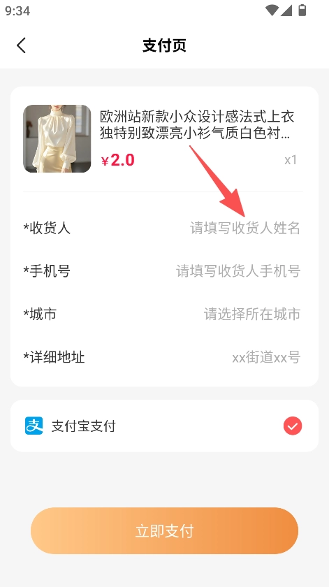 进入支付页面后,填写收货人姓名、手机号码等相关信息,再选择合适的支付方式。