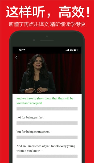 软件内不仅提供演讲音频,还搭配双语文本与解析。