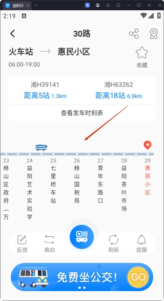 在30路公交的详情界面中,能够查询到该线路的站点分布、运营时段以及公交实时距离等相关信息。