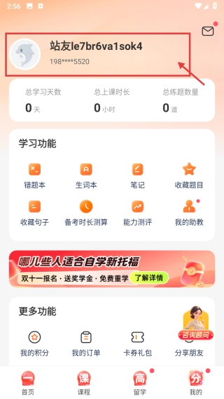 打开教育类首页后,点击底部的“我的”选项,即可进入个人中心页面。