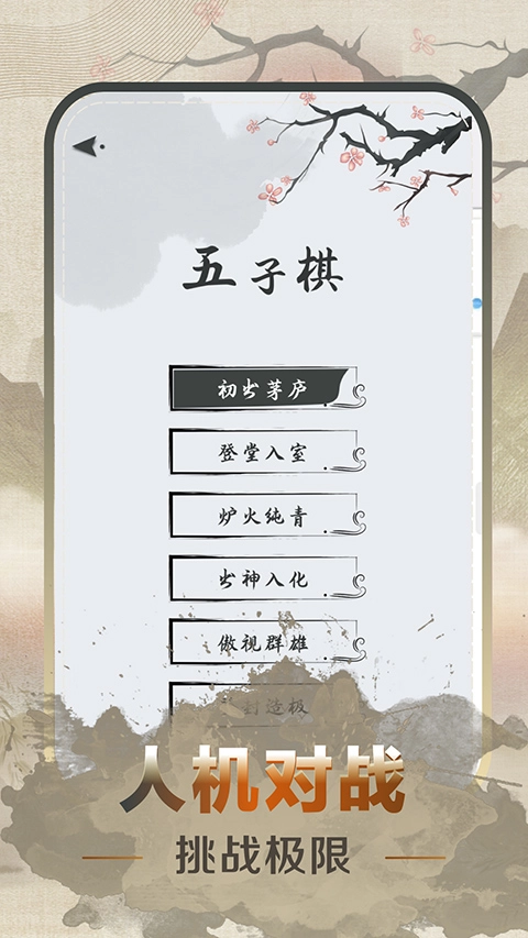 界面设计沿用传统水墨风格,把棋盘和棋子巧妙融入山水画的意境之中,以此营造出优雅的对弈氛围,同时传递出浓厚的文化气息。