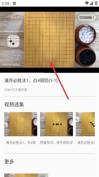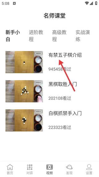 在名师课堂页面,点击像【有禁五子棋介绍】这类课程,就能进入课程播放界面。