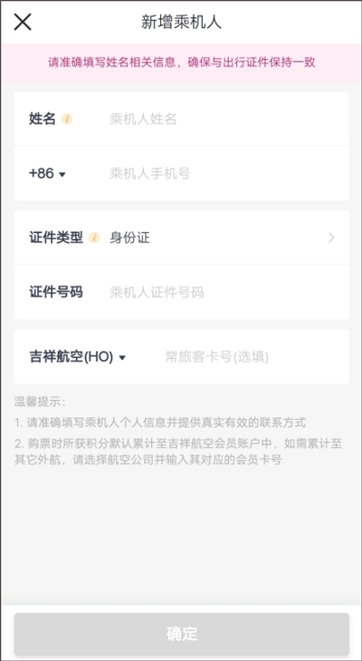 打开吉祥航空APP或官网,进入首页后,填写往返的出发地和目的地信息,以此查询机票。
