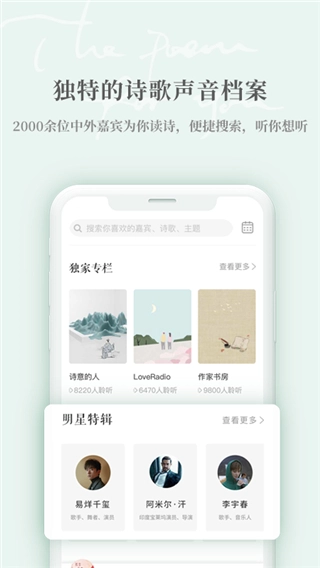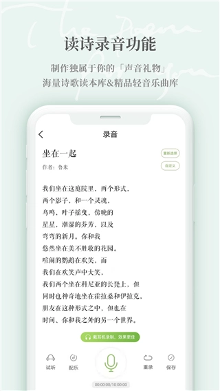 “为你读诗”是一款在线阅读类软件,核心业务是提供高品质的诗歌朗诵服务。用户能够在这个平台上发现并聆听来自全球的经典与现代诗歌作品,借助专业朗诵者的演绎,深入感受诗歌所蕴含的情感与内在意蕴。