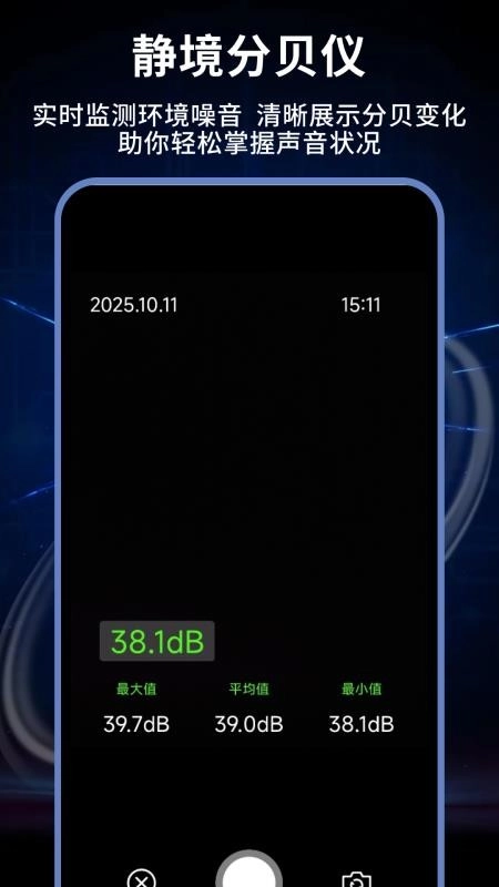 界面整体设计十分简洁,平台可精准检测环境分贝数值。