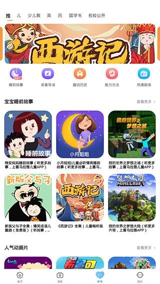 切换到【课程】页面后,我们还能看到启蒙教育、科学探索、国学经典等多种不同的课程分类。