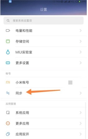 小米云服务的数据要怎么删除呢?首先打开小米手机的系统桌面,接着进入系统设置,然后找到“账号”板块里的“同步”选项并点击进入。