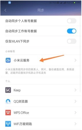 接着点击“小米账号”下面的“小米云服务”进入。