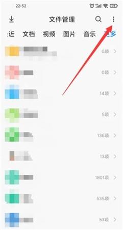 首先打开小米手机的文件管理页面,接着点击右上角的三点图标。