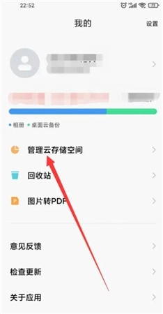 进入云盘个人中心后,点击【管理云存储空间】选项即可进入该功能页面。