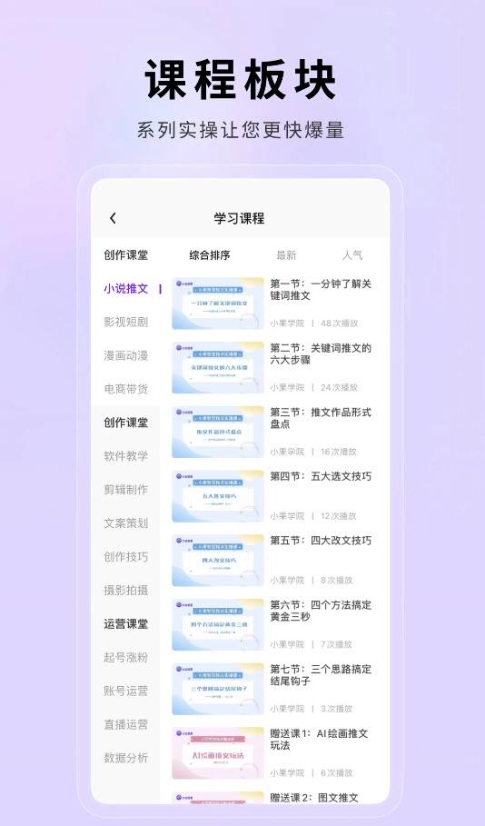 小果繁星2026新版本现已完成更新,这是由小果视界团队精心打造的一款短视频教学产品。在小果繁星中,不仅汇聚了各大短视频平台的教学教程,还配备了各类热门的视频剪辑辅助工具;此外,它还有一项颇具特色的服务——针对会员推出了原创视频领取功能,无论用户是从事短剧创作还是小说推文,只要是小果繁星的会员,都能每日领取原创视频资源。