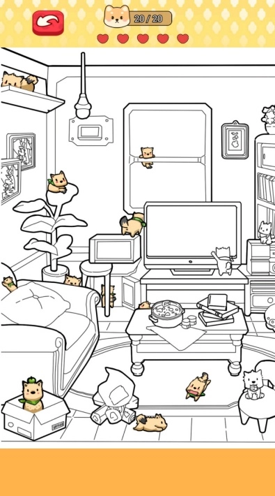 目标类型分为固定角色与随机物品两类,这一设计提升了关卡的多样性。比如,玩家或许需要在一幅场景图里找出所有的狗狗,也可能是特定的某些物品。