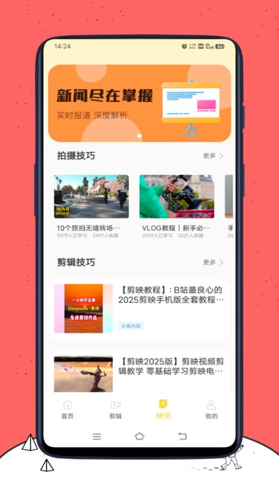 学习功能方面,平台设置了拍摄技巧与剪辑技巧两大板块,通过提供丰富的教程及学习资料,帮助用户提升影像创作能力。