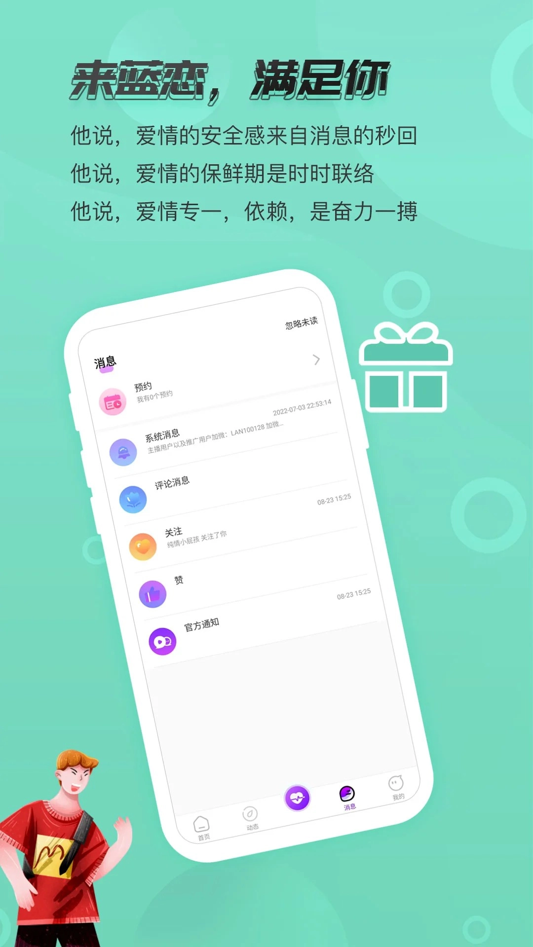 蓝恋交友软件上有许多主播在线与用户互动,大家可以近距离接触,让彼此的距离更近