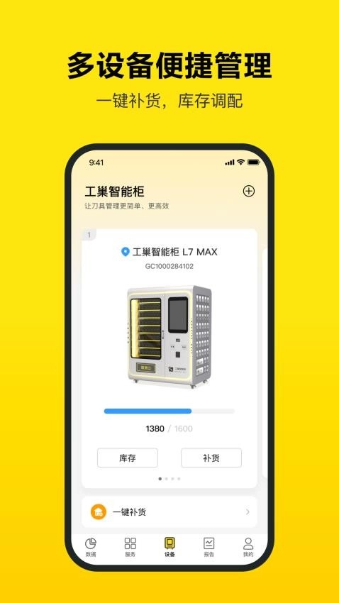 工巢手机版是一款专注于工厂物料领用场景的应用软件,用户可通过它在线便捷完成所需物料的领用操作。平台配备专属智能柜,用户能自由选择使用,界面设计简洁友好,便于快速上手,确保使用过程顺畅无忧,助力员工轻松领用物料,实现一键降本增效。 该平台具备物料消耗实时跟踪功能,支持多维度数据查看,可轻松完成运营数据的汇总与分析,并能定时提醒用户对智能柜库存进行补货,实现库存的实时调配。此外,工巢软件还提供设备管理服务,方便用户对自有设备进行便捷化管理,随时处理售后服务事宜。有需求的用户欢迎即刻前往本站体验使用!