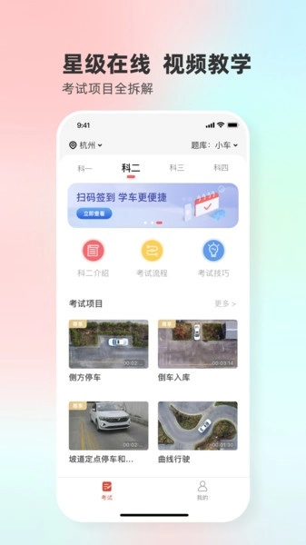 提供小车、货车、客车、摩托车等全车型考试题库,覆盖完整学车流程。