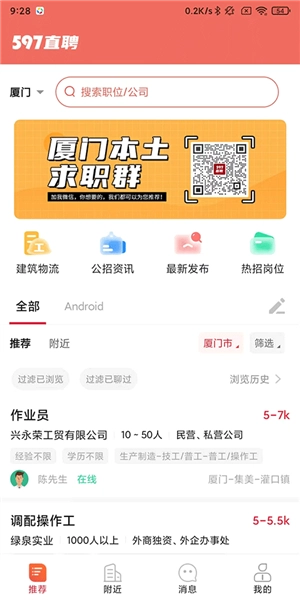 《597直聘》是厦门才盛人才服务有限公司开发的求职类生活服务软件。找工作时若有专业工具助力,还能匹配到最适合自己的岗位,这想必是件美事吧?平台汇聚了各地正规靠谱的真实有效职位,用户只需投递简历,就能静候企业回复;无论是个人求职还是企业招聘,都能在这里找到所需信息,想找工作的话,就来试试吧!
