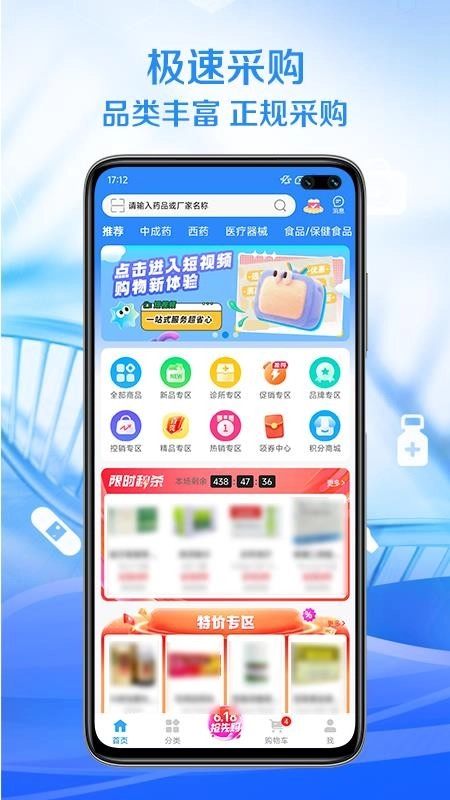 让各类医药商品的采购变得更便捷高效,用户能随时在线高效地采购医药商品。