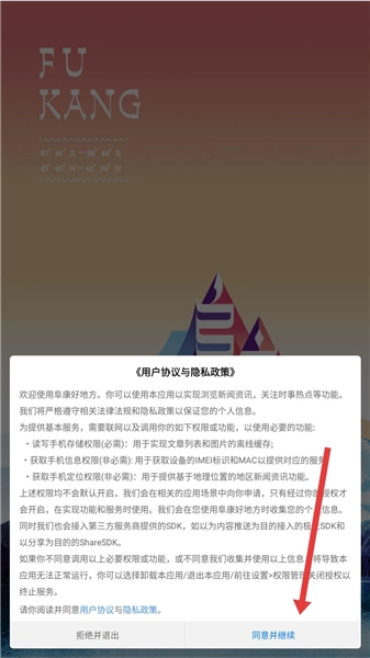 打开软件后,会弹出用户协议和隐私政策的界面,你需要仔细阅读里面的相关内容,然后点击界面右下角的“同意并继续”按钮,这样才能继续使用该应用。