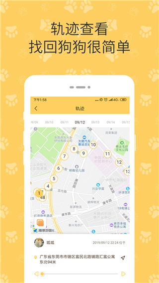 72小时运动轨迹可随时查看,每一步都清晰可见,让主人更安心。