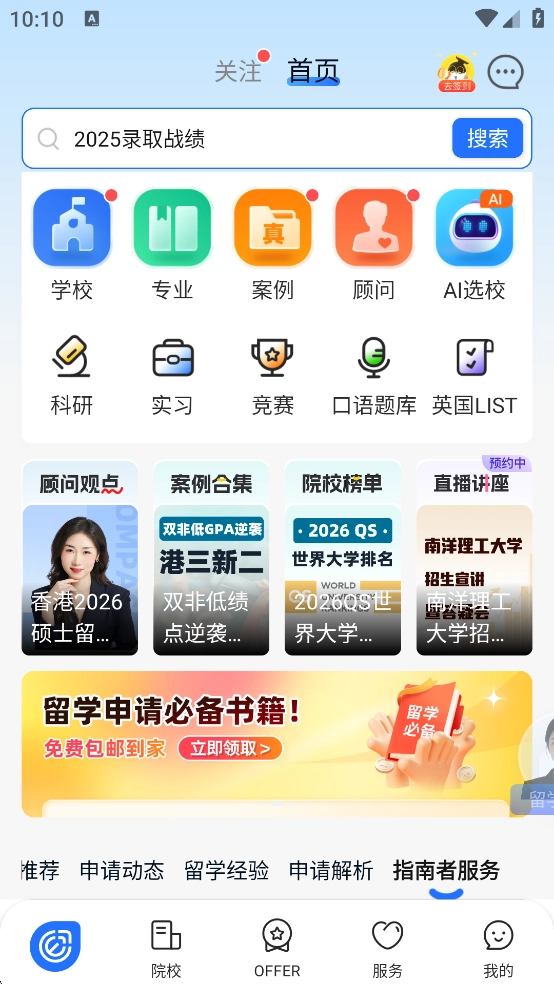 指南者留学App是一款专门为计划出国留学的用户打造的应用,能为大家提供国外大学的相关信息,涵盖考试、专业等方面内容,还有往届的学长学姐分享各类学习经验。这款App已经帮助数千名学生成功获得斯坦福大学、哥伦比亚大学、香港大学、新加坡国立大学、帝国理工学院等海外TOP100名校的录取通知书。要是你也有出国留学的打算,不妨来体验一下吧!